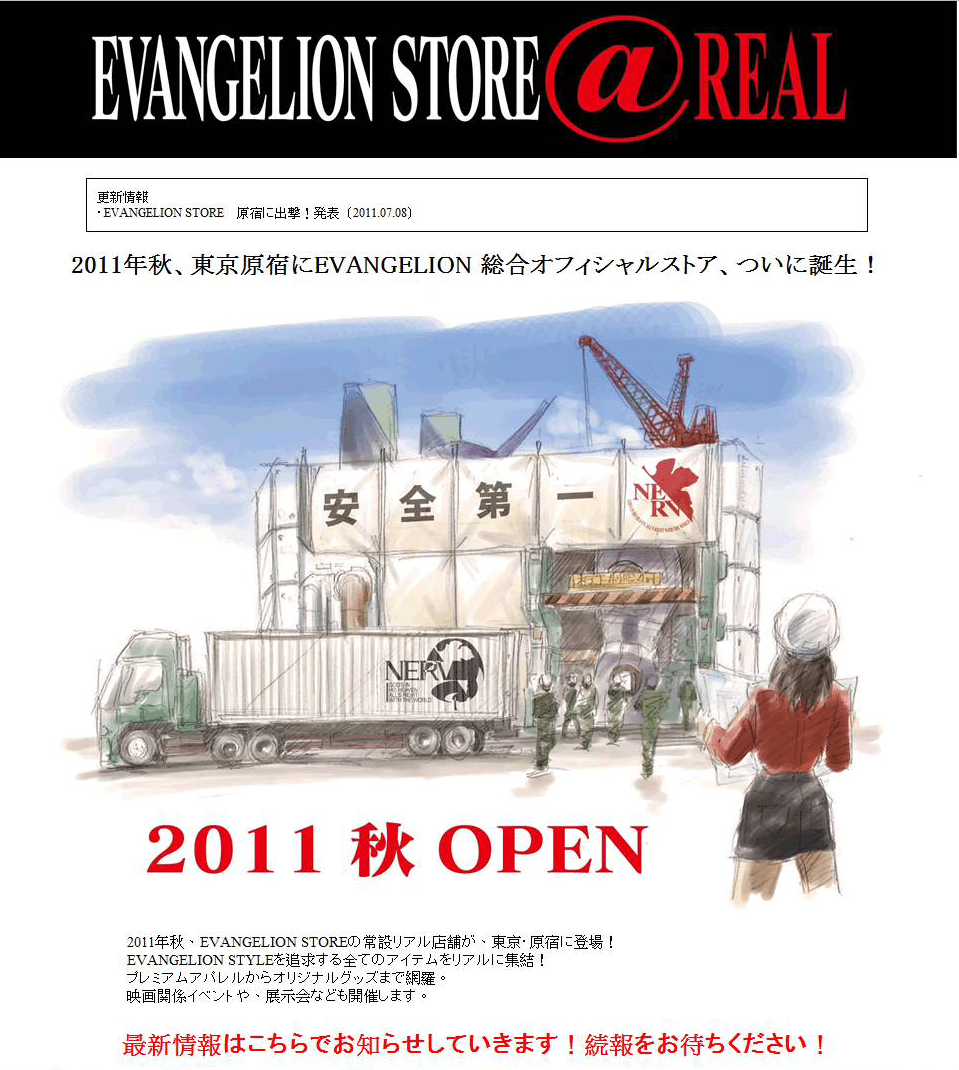 EVA 專門店 2011年秋天即將於東京原宿開幕